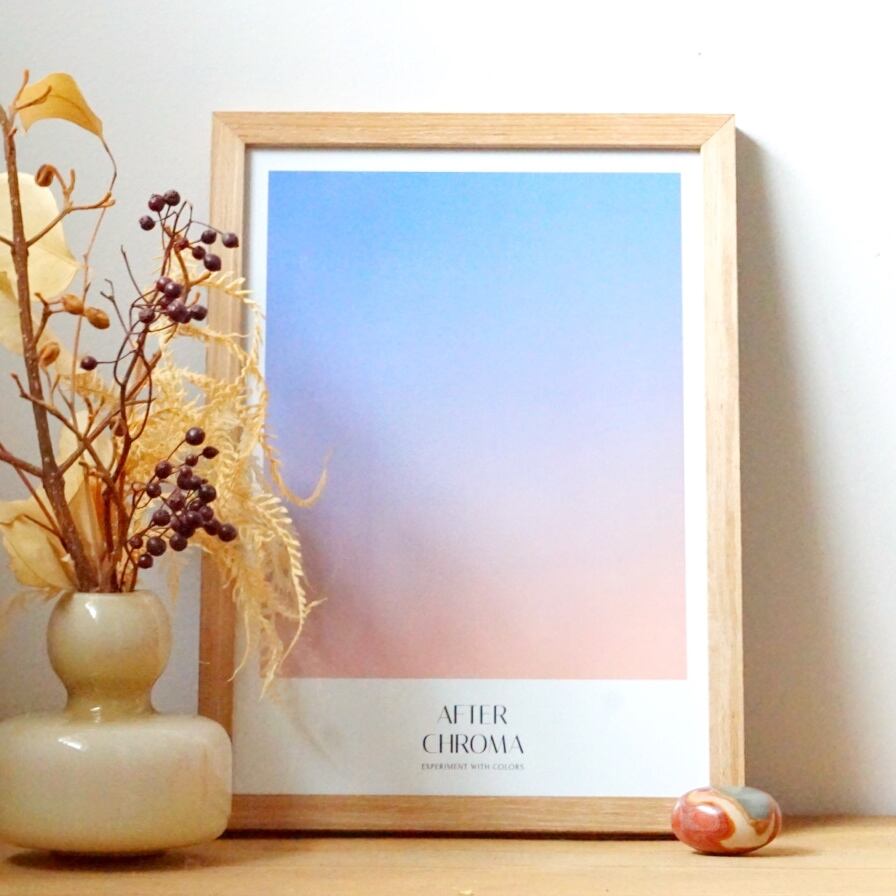 移ろいゆく色と光のグラデーションをモチーフにしたポスターです。存在感を持つグラフィックで、空間に新たな息吹を吹き込みます。質感のあるマットな用紙を使用しているため、上品で落ち着いた印象。シンプルながらも、明るく存在感のあるポスターです。お部屋のインテリアのアクセントに。